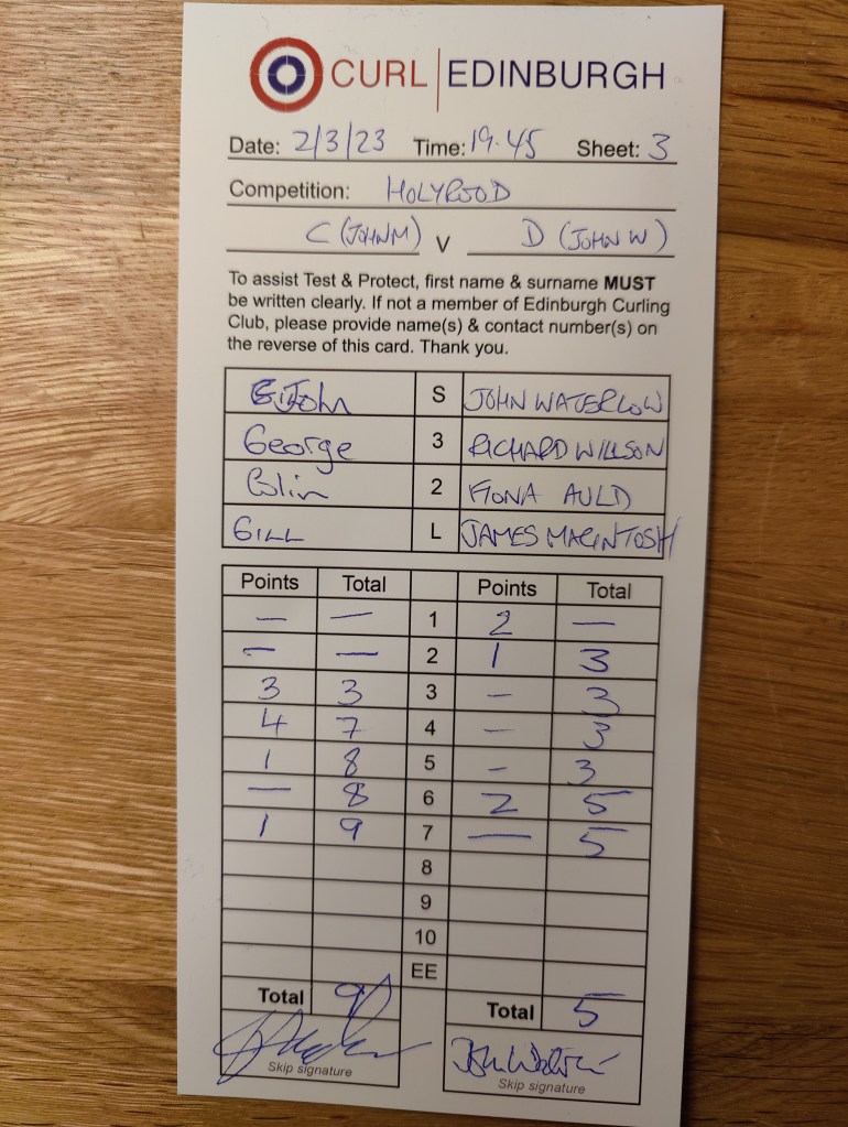 Team C (John Mac) vs Team D (John W) 2nd March 2023 Posted byholyroodcurlingclub2nd Mar 2023Posted inUncategorized Share this: Click to share on X (Opens in new window) X Click to share on Facebook (Opens in new window) Facebook Like Loading... Related