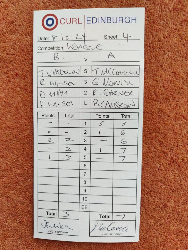 This first game of the 2024/25 season started with high hopes but finished, prematurely, with a disaster. Poor George Morrison, whose star had shone brightly for four ends, took a nasty fall in the fifth which resulted in him being taken by ambulance to A&E. A broken hip has been diagnosed and at the time of writing, the prognosis is for surgery to repair the damage followed by a lengthy recovery period.