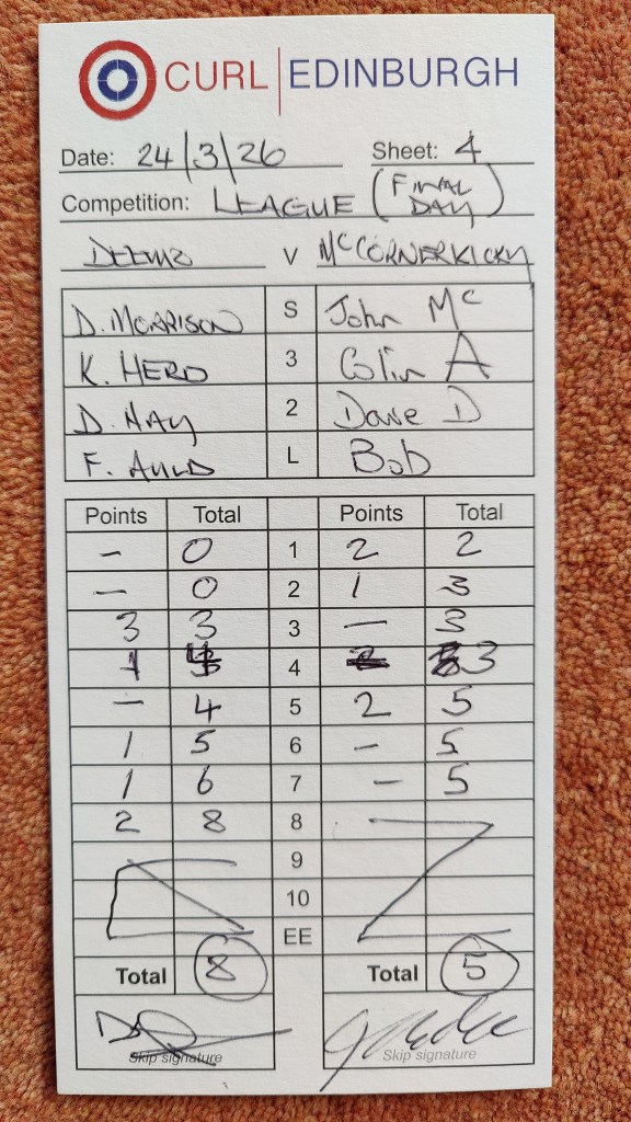 Team B (John Mac) vs Team C (Deemo) 24th March 2026 Posted byholyroodcurlingclub25th Mar 2026Posted inUncategorized Share this: Share on X (Opens in new window) X Share on Facebook (Opens in new window) Facebook Like Loading... Related