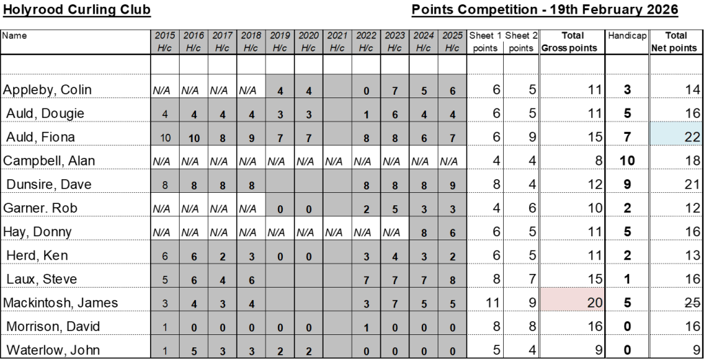 It was the usual combination of fun and frustration as we wrestled with the variety of curling exercises that comprise the annual Points Competition.