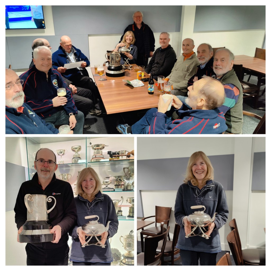 By the time we finished, Bruce and the boys had won the match so we could repair upstairs for a relaxed drink and the presentation of the silverware by El Presidente, Dougie. The trophies are now at the engravers for the winners names to be recorded for posterity. They will be returned to the winners at our AGM at the end of the season.