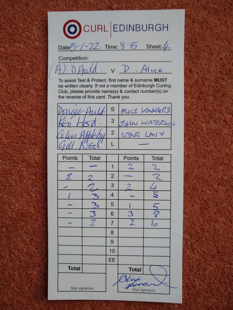 The new COVID rules on sweeping meant that sweepers were under a lot of pressure to deliver and for both rinks that is what they did – we commend and thank them for their efforts.